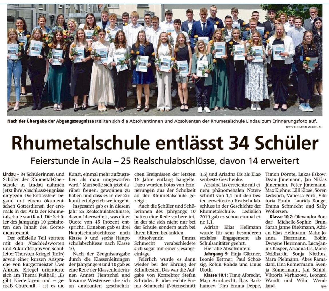 Anmeldung an der Rhumetalschule Den Eltern von Kindern der kommenden fünften Klassen stehen folgende Anmeldetage und -zeiten zur Verfügung: Montag, 27.04.2026, 8 bis 15 Uhr Dienstag, 28.04.2026, 8 bis 17 Uhr |