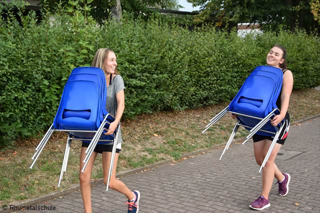 Auf dem Sportplatz kümmerten sich die Sportlehrkräfte zusammen mit den 10. Klassen um den Aufbau.