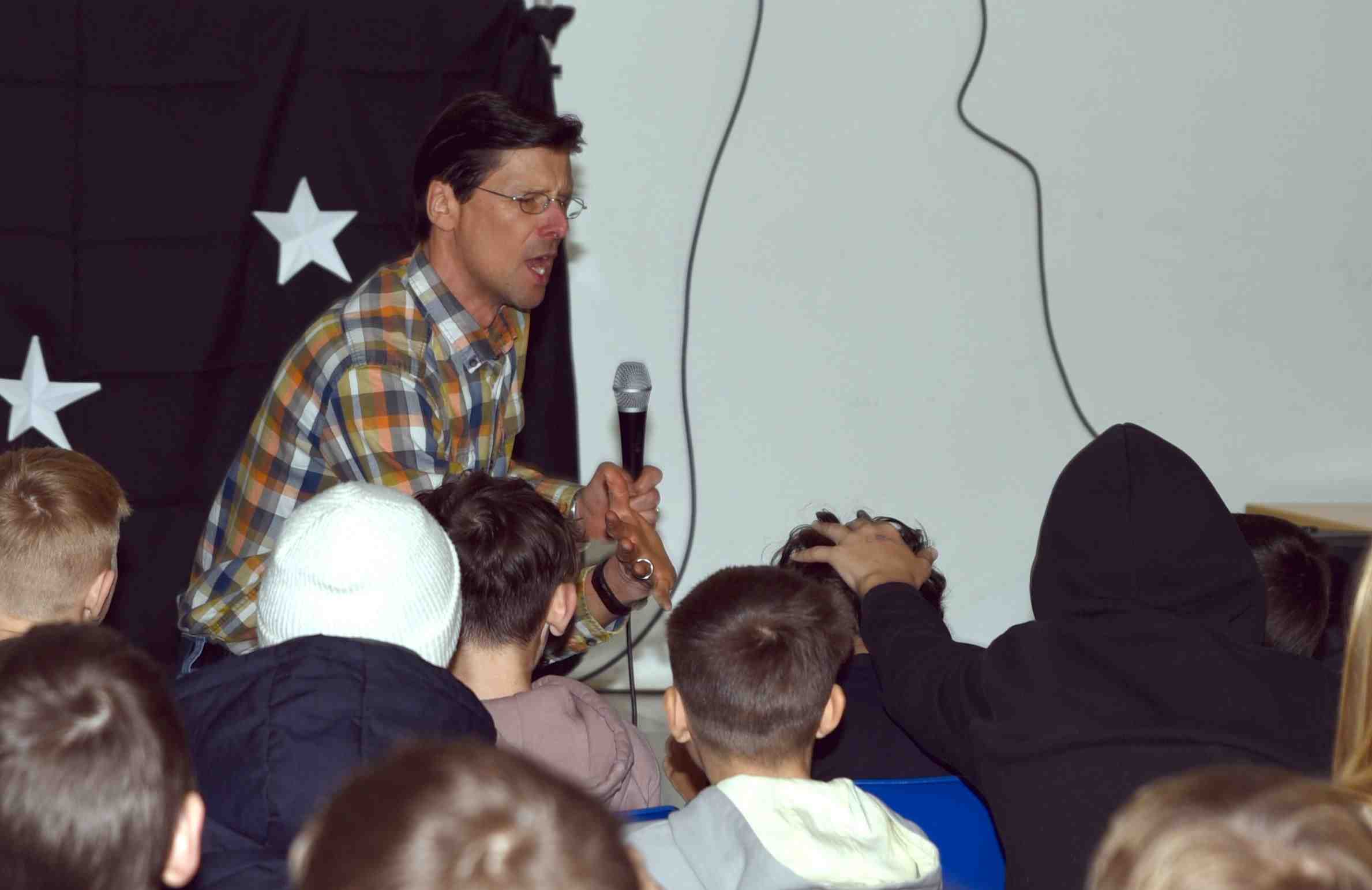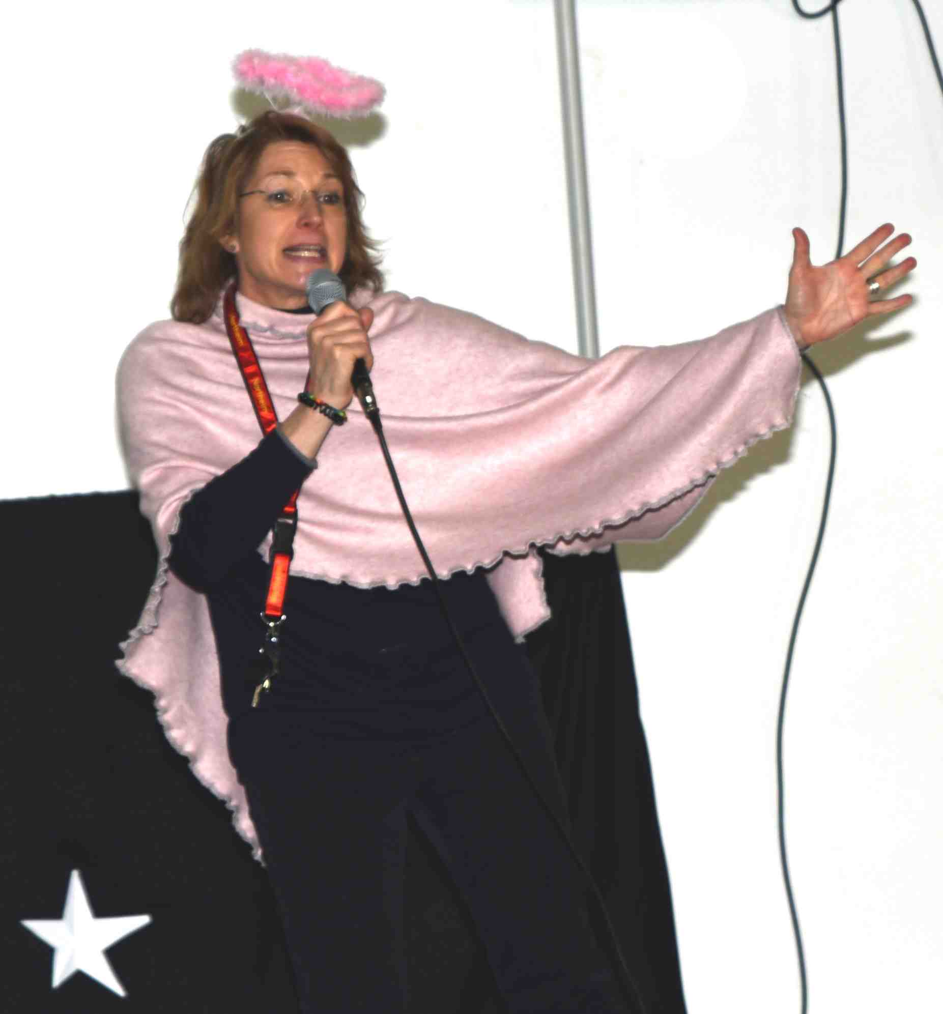 | Nun wurden die Lehrerinnen und Lehrer vom Jahrgang 8 aufs Korn genommen: Frau Meyer-Brucks musste Feliz Navidad performen und glänzte mit ihrer künstlerischen Darbietung. | ||